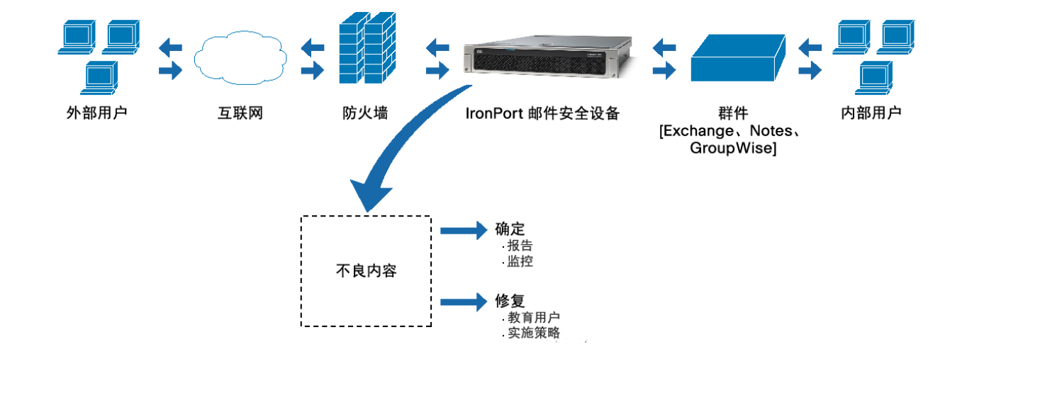 Cisco ESA使用各种机制来过滤垃圾邮件和对抗恶意攻击。该解决方案的目标是过滤掉明确识别的垃圾邮件,隔离或丢弃从不可信或潜在恶意位置发送过来的电子邮件。防病毒扫描适用于来自所有服务器的电子邮件和附件,以删除已知的恶意软件。